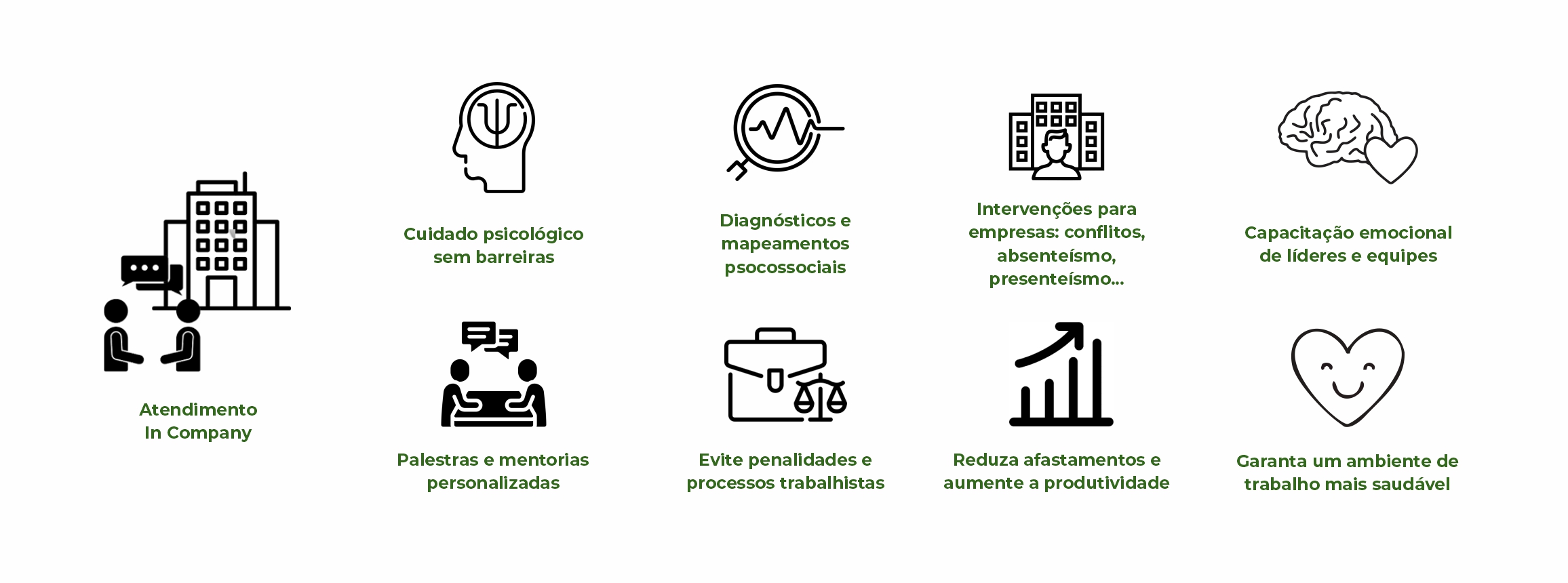 Para organizações, disponibilizamos serviços personalizados diretamente no ambiente de trabalho, com foco na transformação do clima organizacional, capacitação de líderes e equipes, e redução de riscos psicossociais.